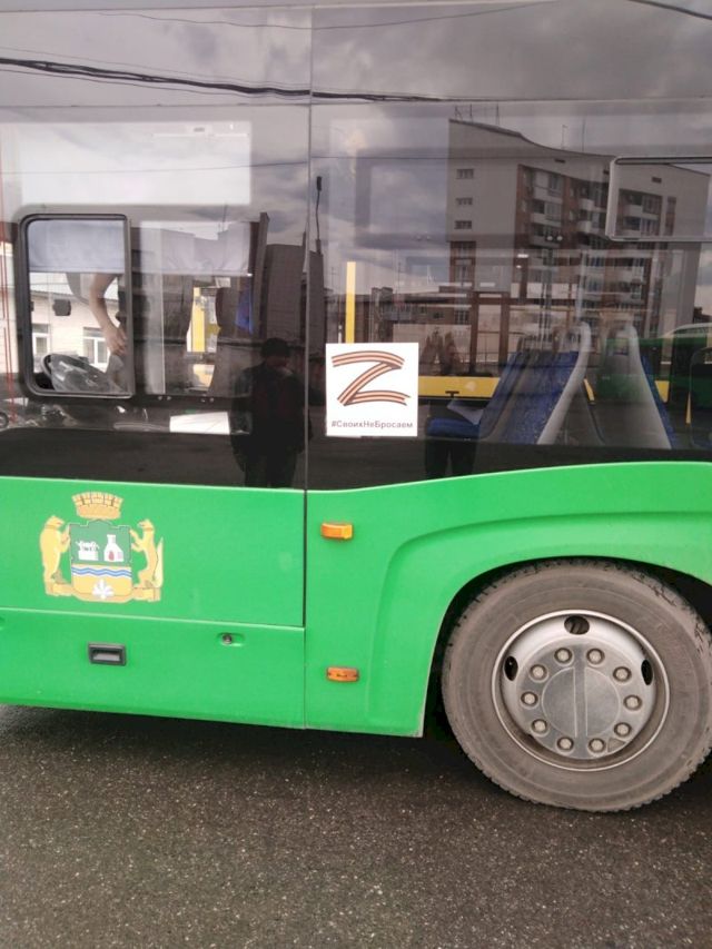 В Екатеринбурге на общественном транспорте появились наклейки большого формата с буквой Z в цветах георгиевской ленты и надписью "Своих не бросаем". Как известно, это символика воинской спецоперации на Украине, которую проводят Вооруженные силы РФ.