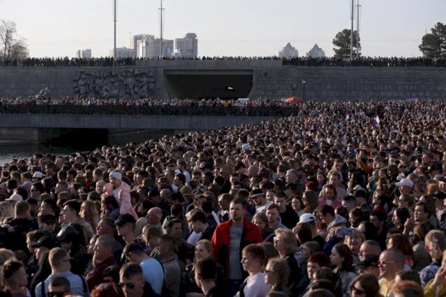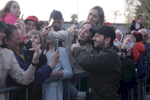 Артисты и горожане почтили минутой молчания память миллионов солдат. Стихи Роберта Рождественского открыли первую часть праздничной программы — за 40 минут известный актер Андрей Мерзликин прочитал несколько произведений о военном времени.