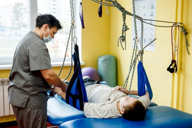 Перед персоналом клиники стоит сложная задача — вернуть тело юноши в вертикальное положение. Специалисты проводят пассивную разработку суставов, чтобы восстановить мышечную память, нарастить мышцы и вернуть им тонус для дальнейшей самостоятельной жизни.