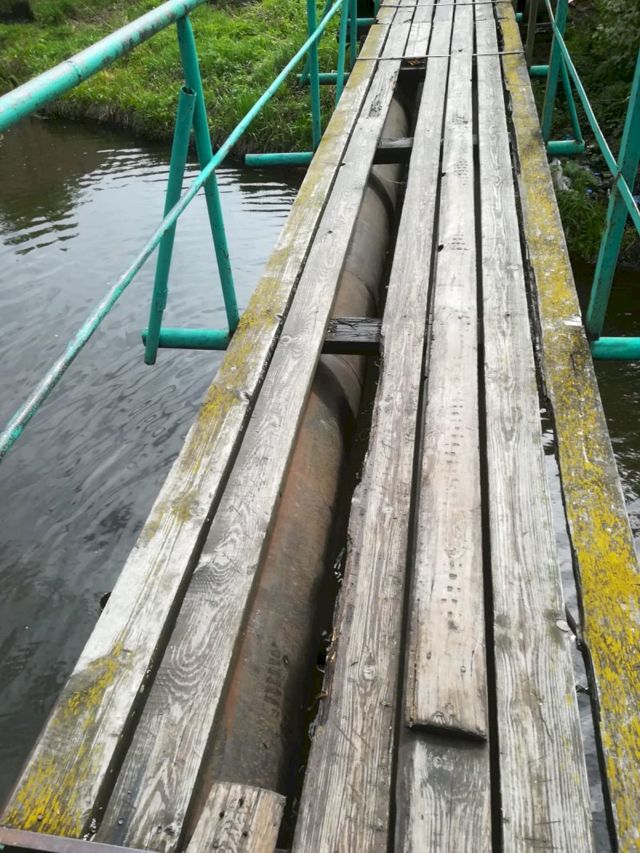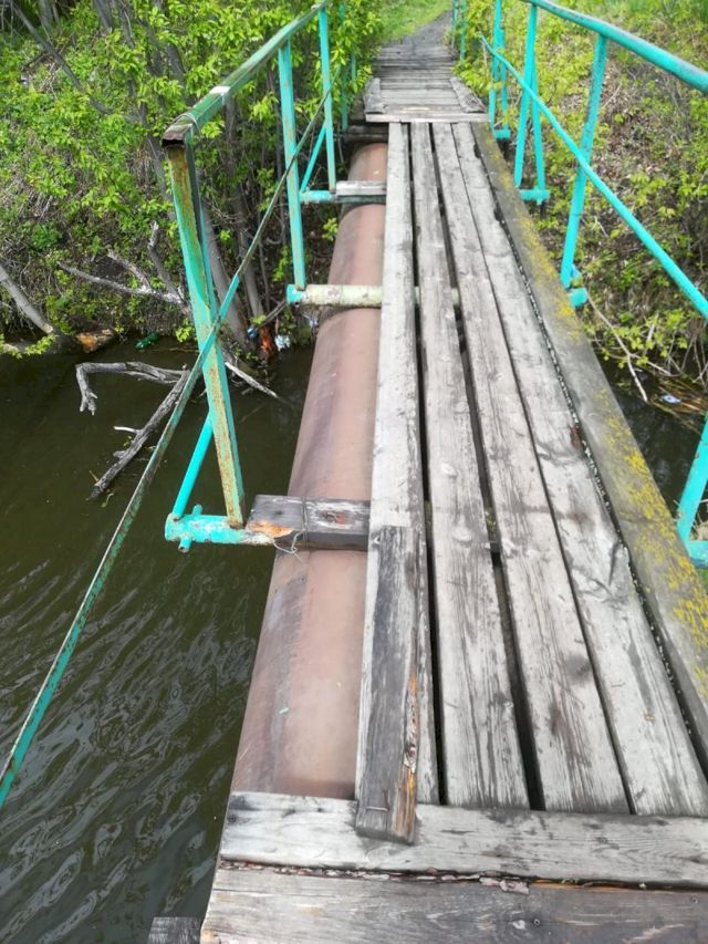 Этот мост соединяет Первую и Вторую Набережные улицы. Ближайший магазин на другом берегу - на улице Советской. Если в обход – то получается крюк в несколько километров. А если по мосту, то быстро, но страшно. Рискуя собой, люди продолжают ходить по аварийному мосту. А Анна Клюкина ищет пилораму, которая могла бы помочь людям, выделить дерево на ремонт моста. Железный каркас крепкий, простоит еще много лет.