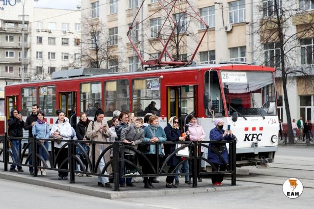 В центре Екатеринбурга произошла авария с участием трамвая. Общественный транспорт, который шел по маршруту № 33, сошел с рельсов на улице Радищева.
