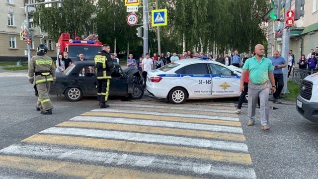 ДТП произошло на перекрестке, который пересекала полицейская машина на красный сигнал светофора. Об этом сообщает telegram-канал «В Лесном».