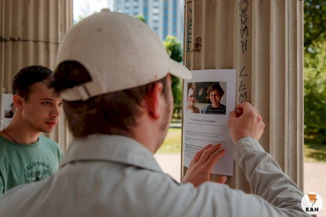 Около 16:00 участники движения «Белые в городе» подошли к ротонде, расположенной со стороны улицы Белинского. На каждую колонну участники начали приклеивать скотчем портреты с изображением оппозиционеров и общественных деятелей. В одном ряду оказались сторонники Алексея Навального* - экс-депутат гордумы Леонид Волков** и Алексей Гресько. В этой же компании оказалась ЛГБТ-активистка Алла Чикинда, Александр Борисенко, выходивший на недавние несанкционированные митинги, а также журналист и пиарщик Дмитрий Фоминцев.