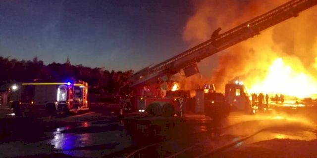 Сообщение о возгорании поступило в 02:16. Изначально площадь составляла 300 кв. м. Приехавшие спасатели эвакуировали с места ЧП 10 человек, четыре дальнобойных автомобиля и бензовоз. К 04:17 площадь пожара составляла уже 1000 кв. м, сотрудникам МЧС удалось локализовать огонь. Под воздействием высокой температуры произошло частичное обрушение кровли и стены ангара. Оттуда были эвакуированы девять газовых баллонов.