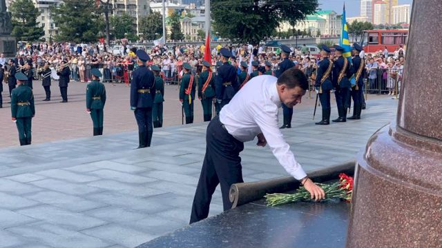 В Екатеринбурге 20 августа в день города прошло традиционное возложение цветов к памятнику основателям уральской столицы. В мероприятии приняли участие руководство Свердловской области и Екатеринбурга, а также представители депутатского корпуса и религиозных организаций.