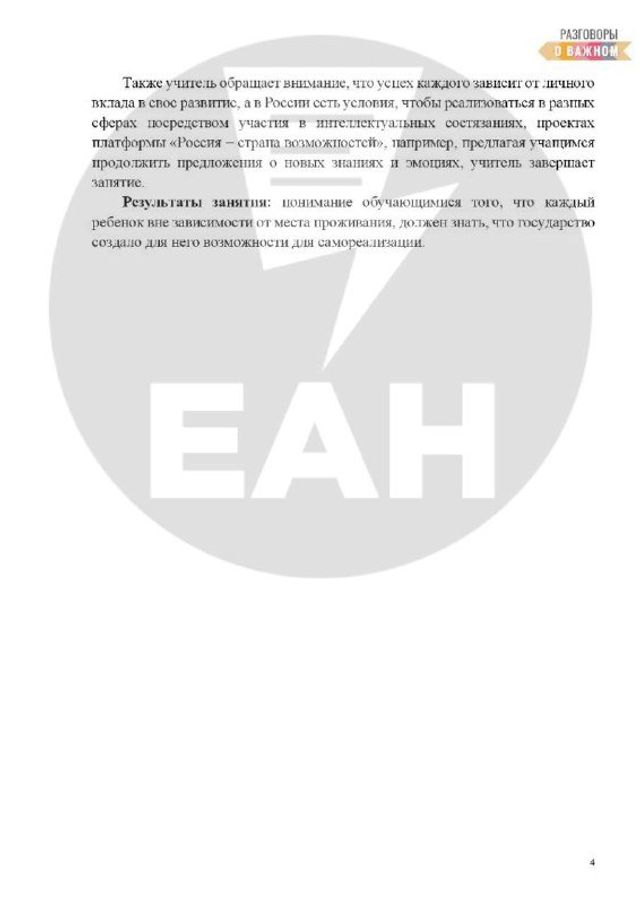 Согласно материалам, предусмотрены отдельные сценарии для проведения уроков в День знаний, День отца, День учителя и другие тематические дни. Методички разработаны с учетом возрастов. Так, с учениками 1-2 и 3-4 классов педагоги должны были провести сегодня урок на тему «Зачем нам знания». Для остальных классов заявлена тема «Мы – Россия. Возможности – будущее». Результатом этого занятия должно стать «понимание обучающимися того, что каждый ребенок вне зависимости от места проживания, должен знать, что государство создало для него возможности для самореализации».