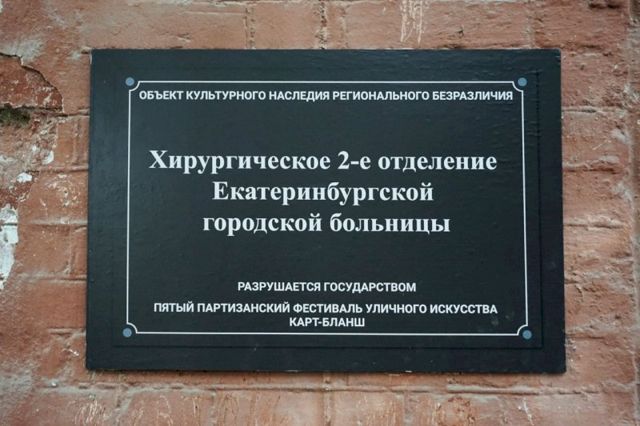 В Екатеринбурге художница Катя Червоных развесила таблички по зданиям-памятникам, которые находятся в полуразрушенном состоянии или близки к тому. Своей работой под названием «Объекты безразличия» Червоных хотела привлечь внимание чиновников к объектам культурного наследия, которые город может потерять.