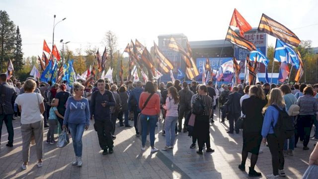 К 16.00 на площадке собралось несколько сотен человек. У многих в руках были российские флаги, символика парламентских партий и плакаты с патриотическими лозунгами. В приветственном слове Вадим Самойлов выразил поддержку участникам акции. Музыкант призвал: «Пускай будет мир, пусть люди прекратят друг друга убивать».