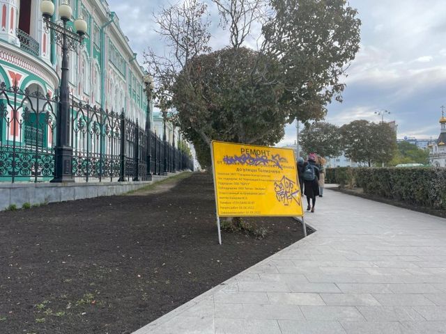 Сроки ремонта тротуара у резиденции свердловского губернатора вновь сдвинулись. ФОТО15 сентября 2022 в 11:26