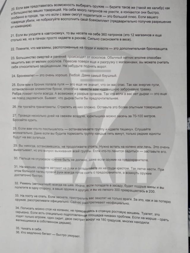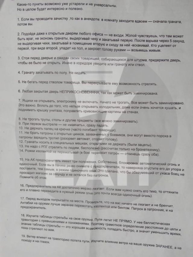 Как стало известно ЕАН от семей мобилизованных березовчан, на предприятиях ГК BROZEX внимательно отнеслись к помощи призывникам. После того, как первые мобилизованные оказались в Елани, они начали звонить близким и сообщать о том, чего им не хватает, и работодатели быстро подключились к вопросу. На березовских предприятиях сотрудникам, которые попадают под частичную мобилизацию, стали выдавать подробную памятку с детальным списком необходимого. Помимо того, ветеран Афганистана составил для мужчин подробную боевую инструкцию, чтобы они могли максимально обезопасить себя в боевых условиях. Документы оказались в распоряжении ЕАН.