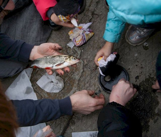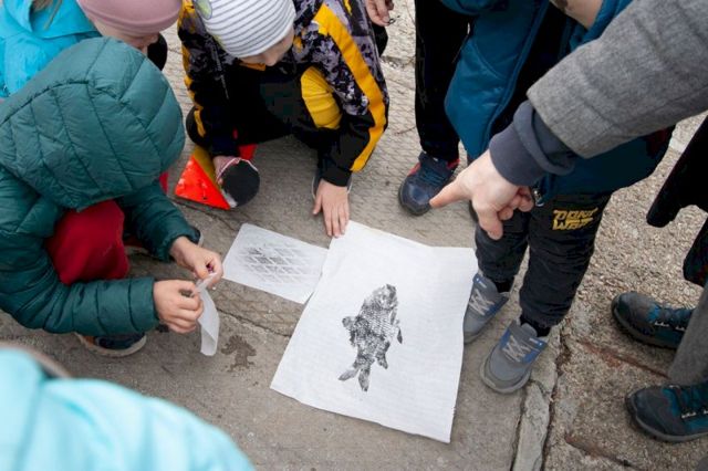 Художники погуляли с детьми, которые живут в ПВР и научили ребят делать с помощью туши печати из вещей, которые были найдены во время прогулки. Мария и Егор говорят, что очень важно, чтобы дети были любопытными к окружающему миру и друг другу, поэтому и предложили такую прогулку в поиске приключений. Они планируют продолжить поездки в этот и в другой ПВР.
