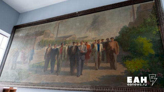 Внутри там сохранились артефакты советской жизни. Например, на первом этаже в бывшем помещении музея можно найти барельефы, посвященные жизни завода, а на лестничных холлах - полотна в стиле соцреализма о будущем коммунистического человека.