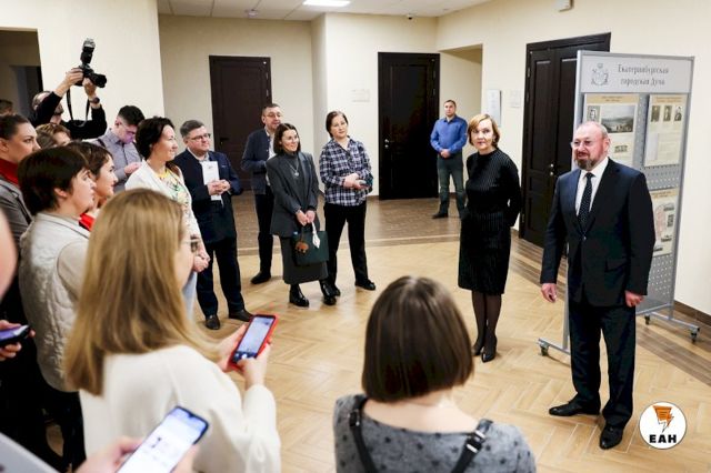 Как рассказал на открытии выставки вице-спикер ЕГД Виктор Тестов, первоначально планировалось открыть музей, в котором зрители могли бы полностью окунуться в историю гордумы. Однако из-за антироссийских санкций возникли сложности с поставками оборудования. В итоге, по словам Тестова, выставку пришлось организовывать по старинке: с использованием стандартных материалов и планшетов.