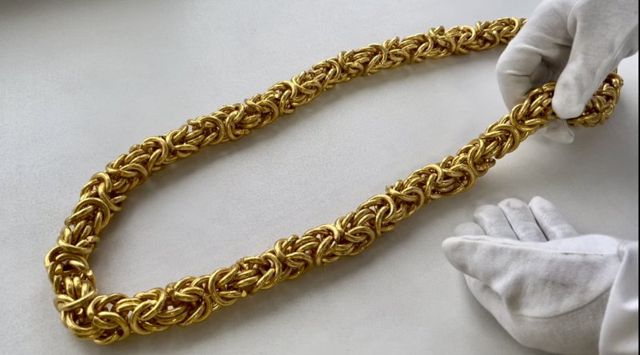 В таможенном управлении напоминают, что с 1 сентября 2022 года до 28 февраля 2023 года в России введен временный запрет на вывоз из страны заготовок, полуфабрикатов или лома драгметаллов. Золотую цепь изучат эксперты, затем будет принято процессуальное решение.