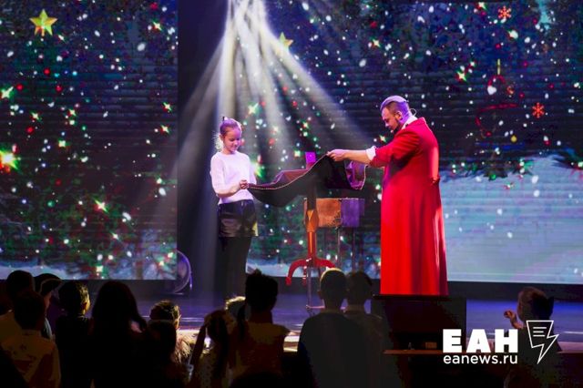 На театрализованном представлении с элементами интермедии детям устроили лазерное и иллюзионное шоу, танцевальные флешмобы. Вместе гости совершили настоящее чудо.