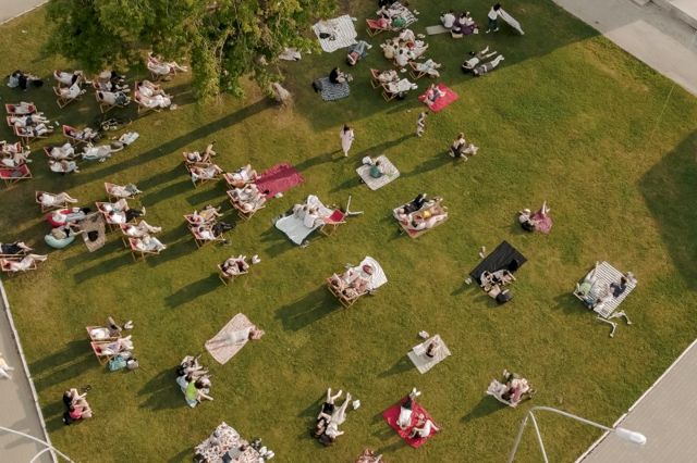 Благодаря инициативе банка, весь июль посетители екатеринбургского парка Маяковского могли бесплатно смотреть фильмы и мультфильмы, расположившись в гамаках или на пледах.