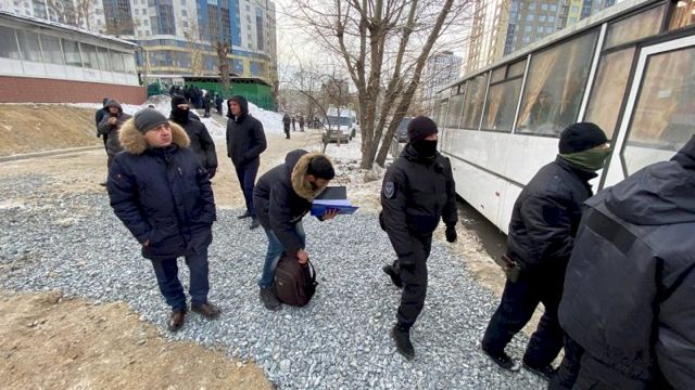 В Екатеринбурге силовики оцепили здание мечети на улице Репина. Они дождались, пока закончится молитва, и начали забирать верующих в автобусы.
