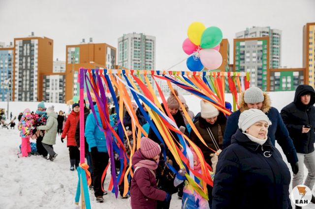 Праздничные мероприятия проводились практически весь день. Помимо концертной программы, для гостей были организованы традиционные забавы. Все желающие могли поучаствовать в соревнованиях по катанию на лопате, по метанию веников, бегу в мешках, перетягиванию каната или в боях подушками на бревне. Также прошли семейные спортивные эстафеты, участники строили и завоевывали крепости. Юные горожане получили сладкие призы, а главный застройщик района угощал всех желающих блинами.