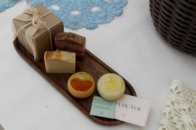 Это картины, мягкие игрушки, вязаные куклы, украшения и многое другое. Ноу-хау этого года стало мыло ручной работы, которое не только красиво выглядит, но и издает потрясающий аромат.