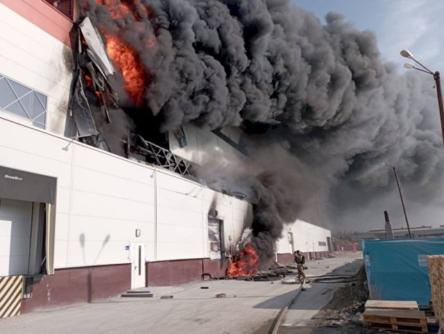 По оперативной информации, площадь пожара составляет 3000 кв. м. Перед прибытием спасателей здание покинули 110 человек, данных о пострадавших нет. На месте работают 49 человек и 16 единиц пожарной техники.