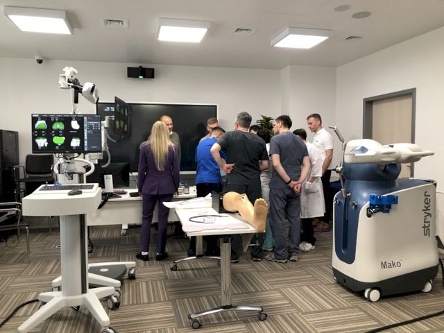 Как сообщает пресс-служба клиники, робот Mako – это новейшая роботизированная система для эндопротезирования крупных суставов производства компании Stryker. Она значительно облегчает работу травматологов-ортопедов и делает операции по замене суставов максимально точными.