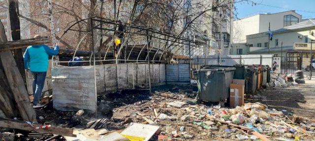 В центре Екатеринбурга сегодня произошел пожар на площадке, где владельцы апарт-отеля «Радиус» планируют возводить вторую очередь комплекса. Как сообщает корреспондент ЕАН, горели мусорные баки во дворе по улице Малышева.