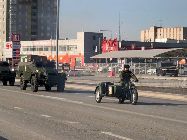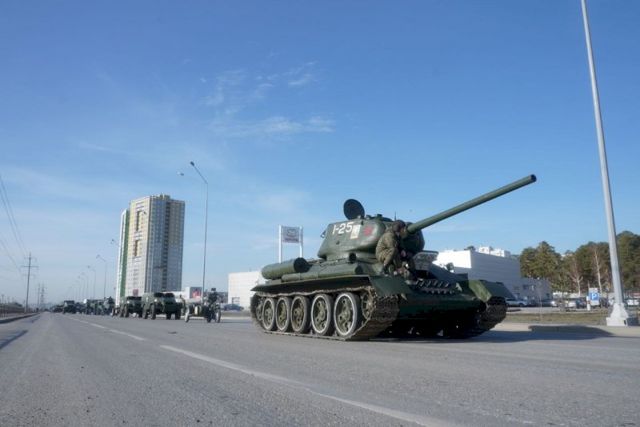 В Екатеринбурге проходит первая репетиция парада Победы. Запланировано, что техника пройдет по 2-й Новосибирской улице на Вторчермете.
