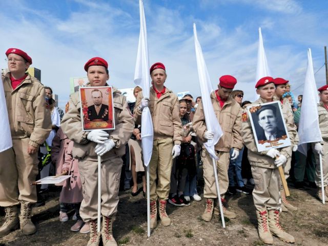 Несмотря на отмену по всей стране акции «Бессмертный полк», многие жители Академического принесли с собой портреты родственников, участвовавших в Великой Отечественной войне. В конце мероприятия воспитанники одного из местных детских садов выпустили белых голубей – символ мирного неба над головой.