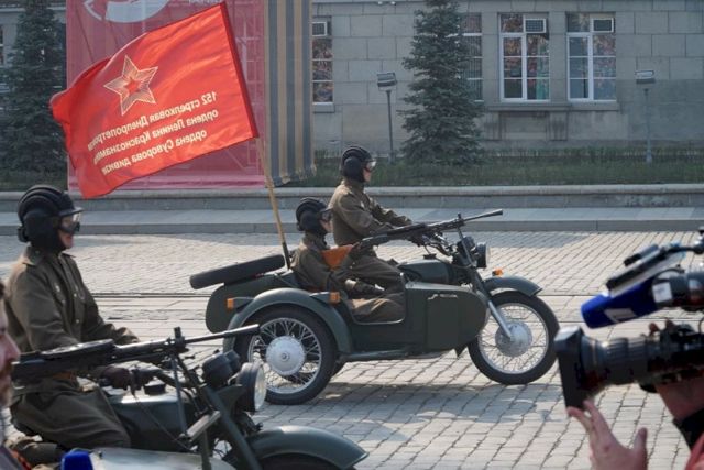 В Екатеринбурге сегодня по Площади 1905 года прошел традиционный парад войск, приуроченный к 78-й годовщине победы в Великой Отечественной войне. Особенностью церемонии в этом году стало отсутствие танков в колоне военной техники (за исключением легендарного Т-34) и не состоявшийся «Бессмертный полк». Однако впервые в параде, как и анонсировал ЕАН, принял участие плавающий автомобиль ЗИЛ-49061 «Синяя птица», используемый в космической отрасли.