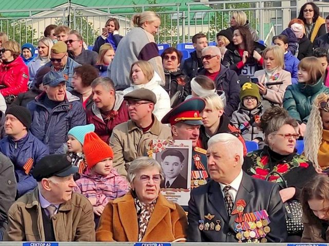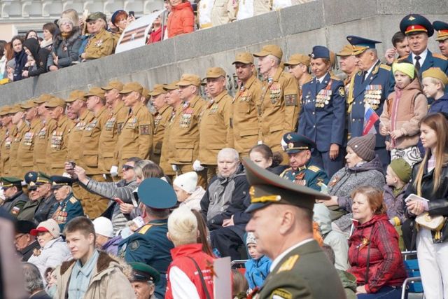 После прохождения техники военный оркестр провел показательное выступление и на этом торжественная часть закончилась. От шествия «Бессмертного полка» в Екатеринбурге, как и по всей стране, отказались (прежде акцию отменяли в 2020-2021 гг. из-за пандемии). Впрочем, некоторые зрители принесли с собой на трибуны плакаты с фотографиями родственников-фронтовиков.