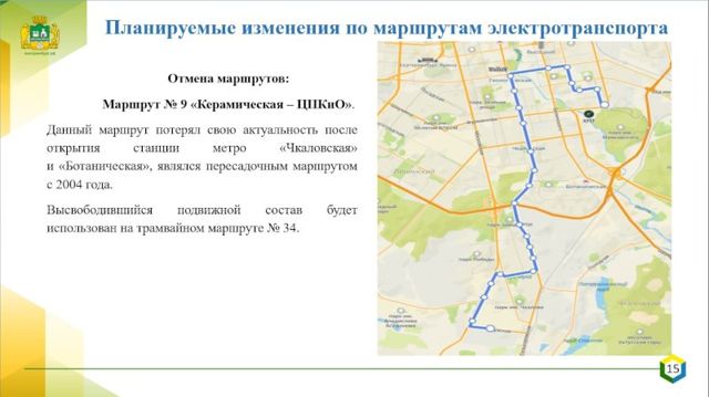 Маршрут № 9 «Керамическая – ЦПКиО» будет отменен;