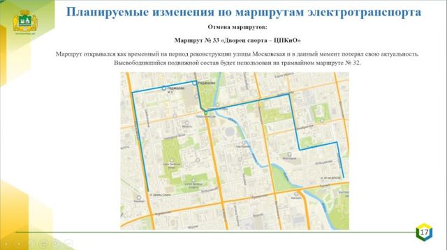 Маршрут № 33 «Дворец спорта – ЦПКиО» будет отменен.