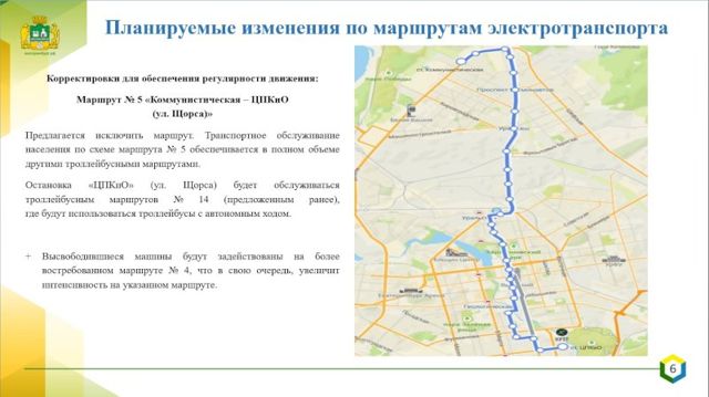 Маршрут № 5 «Коммунистическая – ЦПКиО (ул. Щорса)» будет отменен.