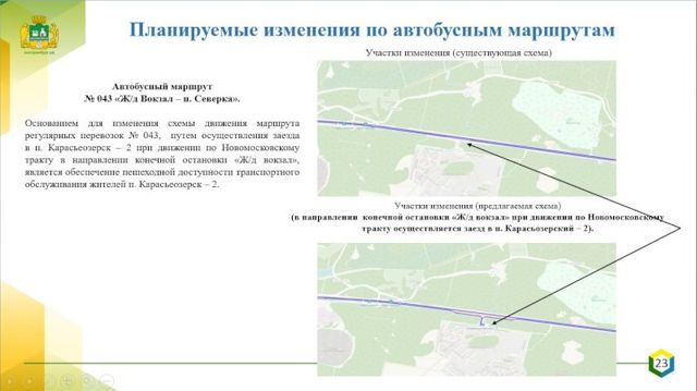На маршруте № 043 «Ж/д вокзал – п. Северка» появится заезд в поселок Карасьеозерск;