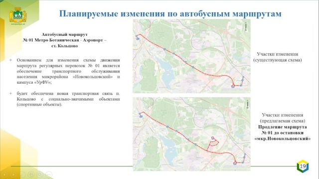 Маршрут № 01 "Метро "Ботаническая" - Аэропорт – ст. Кольцово" также будет проходить через Новокольцовский;