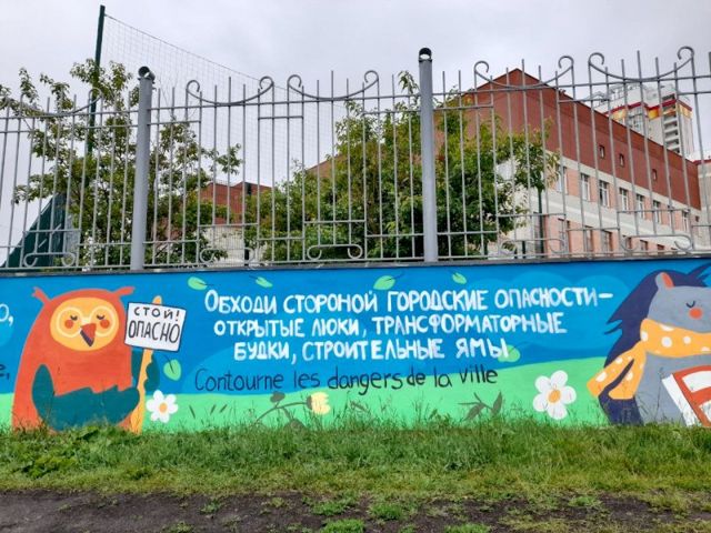 На самом мурале кроме лисы художники написали советы. Их четыре, и они, по задумке авторов, возможно, помогут ребенку не потеряться.