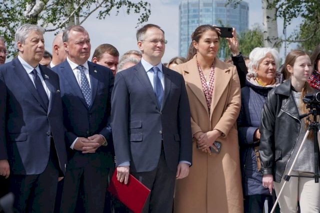В Екатеринбурге торжественно открыли стелу «Город трудовой доблести». На церемонию прилетел помощник президента России Владимир Мединский. Он зачитал поздравительную телеграмму главы государства Владимира Путина, адресованную Екатеринбургу.