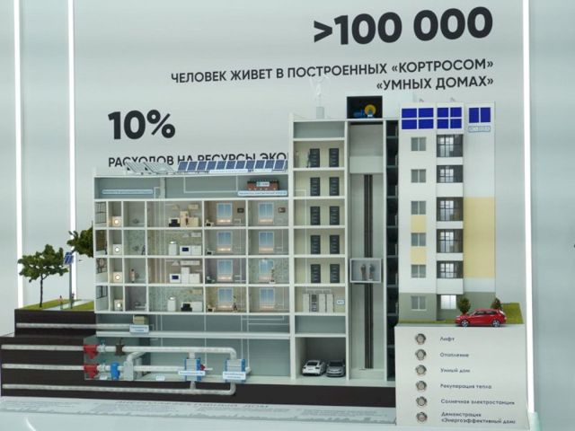 В Екатеринбурге на международной промышленной выставке "Иннопром-2023" ГК «КОРТРОС» представила самый энергоэффективный дом в России. В прошлом году с этим проектом ГК «КОРТРОС» выиграла конкурс Минстроя РФ «Энергоэффективное ЖКХ».