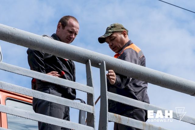 «На мосту есть деформационные швы для того, чтобы все свободно ходило при перепаде температур. Однако при строительстве моста были допущены небольшие нарушения. В частности, были намертво сварены перила. Из-за этого все ограждение выгнулось. Распилим перила, сделаем технологический разрыв, заварим все, что отошло, и мост будет стоять в порядке дальше», - рассказал ЕАН мужчина, руководящий работой ремонтной бригады.