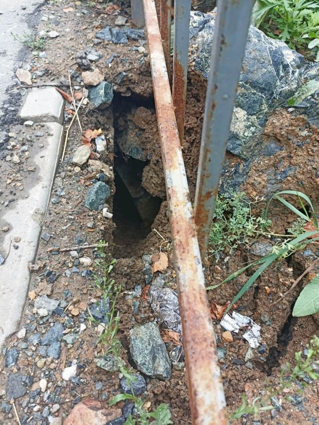 Один из провалов возник возле детской площадки. Жильцы отмечают, что год назад застройщик засыпал провалы асфальтом и глиной, но результата это не принесло. По мнению собственников, работы по ликвидации ям не были проведены достаточно качественно — пустоты не были утрамбованы.