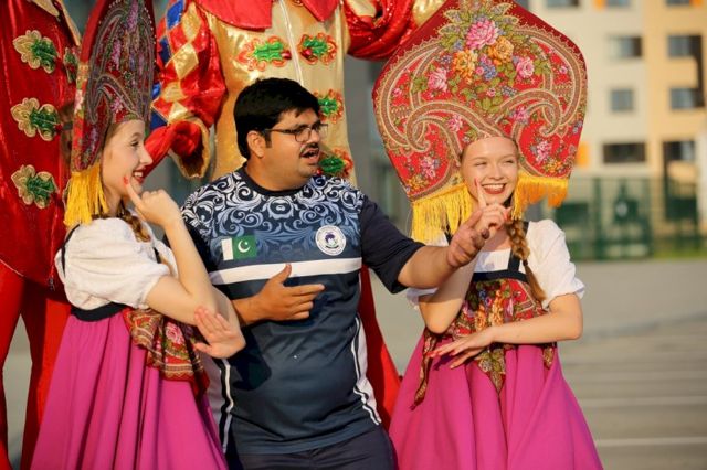 «Мы очень рады быть в России, в Екатеринбурге. Нас очень тепло приняли, мы не ожидали такого яркого приема. Наши спортсмены будут соревноваться в теннисе, в тхэквондо и в очень популярном в России виде спорта — самбо. Думаю, что у нас хорошие шансы на медали», — заявил руководитель делегации Пакистана Мухаммад Икубал Муртаза.
