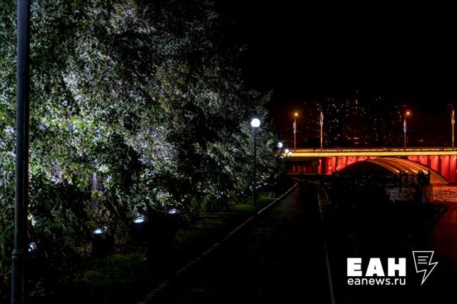 В Екатеринбурге ко Дню города открыли Аллею цветных деревьев. Выразительная иллюминация украсила участок от делового дома «Демидов» до Свердловского академического театра драмы.