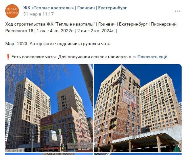 В Екатеринбурге застройщик жилищного комплекса «Теплые кварталы» в квартале улиц Блюхера — Раевского — Комвузовской — Студенческой снова перенес сроки сдачи первой очереди. Об этом ЕАН рассказали сразу несколько дольщиков.