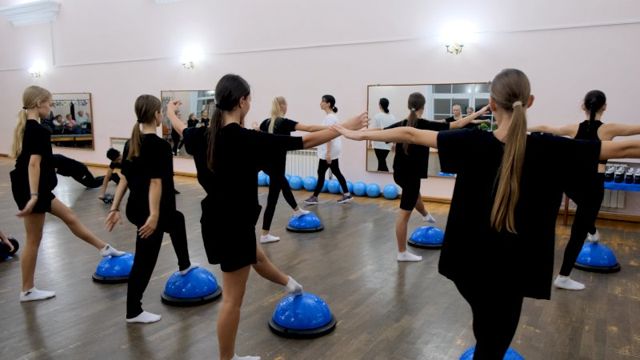 Участники ансамбля спортивного бального танца «Юность» уже протестировали новое снаряжение. Скакалки, фитболы, коврики, утяжелители, разных видов эспандеры, полусферы для баланса, хореографические станки и другое оборудование стали незаменимыми помощниками в развитии физической формы юных артистов.