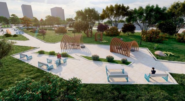 Планом комплексного благоустройства территории предусмотрено создание прогулочных аллей, спортивной площадки с тренажерами, площадок для отдыха, велосипедных дорожек для детей и взрослых. Будут установлены детское спортивное оборудование, скульптуры, качели, беседки, скамейки с модулем для подзарядки телефонов, предусмотрены места под кафе и цветники. На аллеях высадят яблони, липы, иргу, сосны, березы, барбарис, ольху и другие деревья и кустарники.