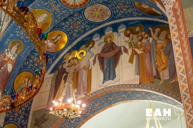 Большое волнение на службе испытывал художник Илья Фирулев, который непосредственно занимался росписью. И церковь во имя архангела Михаила была далеко не первой в его работе. По его словам, только на разработку проекта, которым занимались сестры Ново-Тихвинского женского монастыря в Екатеринбурге, ушло полгода. Еще восемь месяцев понадобилось на саму роспись храмовой части.