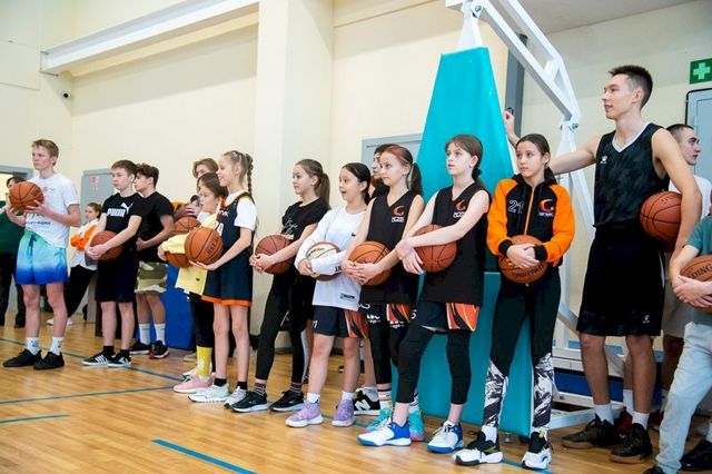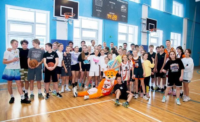 Завершился урок мастерства настоящим спортивным поединком – школьники играли в баскетбол на спортивной площадке вместе со своими кумирами.