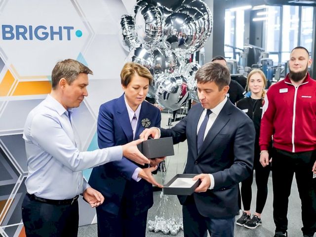 Владелец федеральной сети фитнес-клубов Bright Fit Алексей Романов рассказал, что новое учреждение уже стало 12-м в Екатеринбурге. Так совпала, что сегодня сеть отмечает свой день рождения, в честь этой даты Екатерина Сибирцева вручила Алексею Романову благодарственное письмо от администрации города, а Евгений Мордовин символический подарок от компании-застройщика.