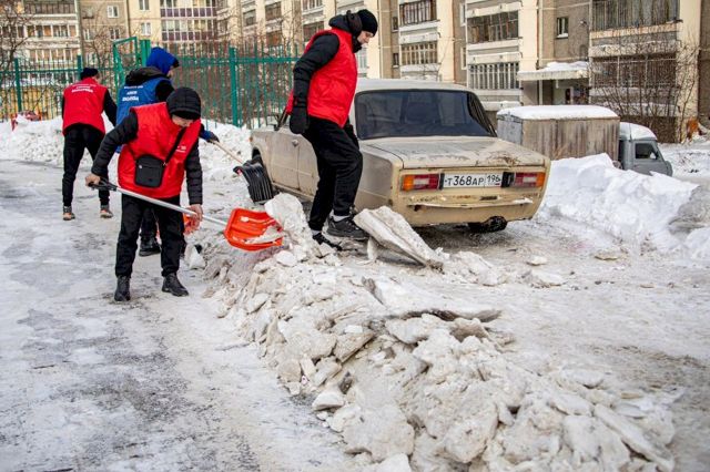 Несколько дней подряд волонтеры убирали территорию во дворах на ул. Таганской и Старых Большевиков. В понедельник к ним присоединились пять единиц уборочной спецтехники. Снегоуборочные работы будут вестись вплоть до самой весны.