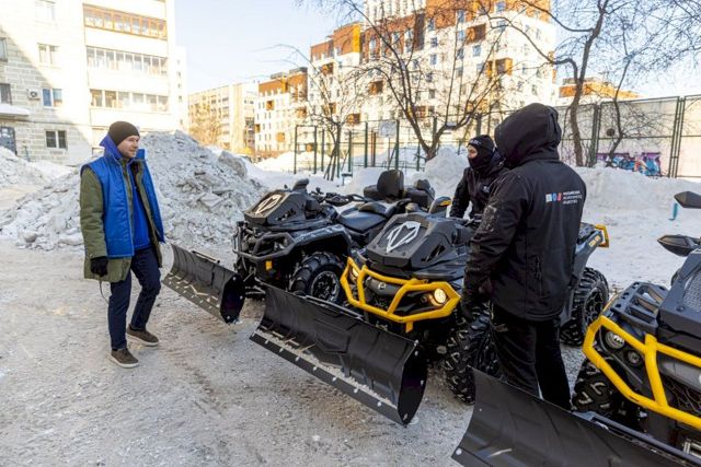 В Екатеринбурге начали бороться со снегом при помощи квадроциклов с ковшами. Ноу-хау придумали активисты Свердловского отделения Российского экологического общества совместно с председателем – депутатом гордумы Екатеринбурга Алексеем Вихаревым. Он лично сел за руль квадроцикла во время уборки двора на улице Стачек, чтобы опробовать новый метод борьбы со снегом.
